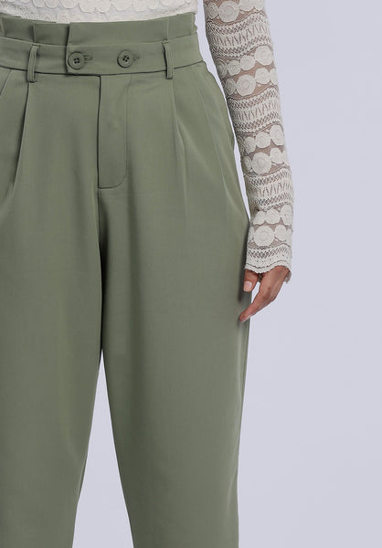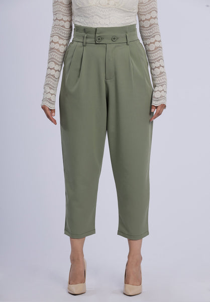 Product Description Update your wardrobe staples with the Calie Sage Pants. A slim tapered fit design featuring detailed front pleats and high waist style with gathered waistband and belt loops. Make going from desk to dinner easy and wear it with a simple, basic top and classic pointed pumps for a clean sophisticated look.